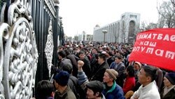 Өкмөт үйүн куралданган милиция күчтөрү айланта курчап, кырдаалга кароо салып турушат. Өкмөт үйүнүн жанында топураган элди көрүп, өткөн жылдагыдай талан-тоноолор чыгып кетпегей эле деп шаардыктар санааркай баштады.