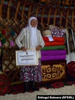 Оңол Матанова: Кээ бирлер акчасы аз болуп, айылдагы өлүм-житимге ошол боз үйлөрдү алып атышат. Биздин боз үй кымбат болуп атпайбы. Бирок кетип атат, кандай жасасак алып кетишет.
