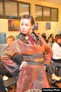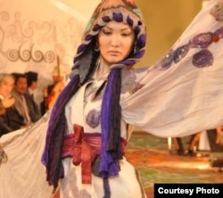 “Азаттык”: Өзүңүздүн брэндиңиз тууралуу айтып берсеңиз. Бул ийне жип колдонбой жүндөн жана жибектен жасалган кийимдер. Мунун негизин ала кийизден алгансыздарбы?